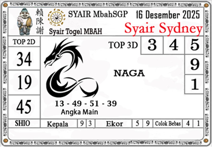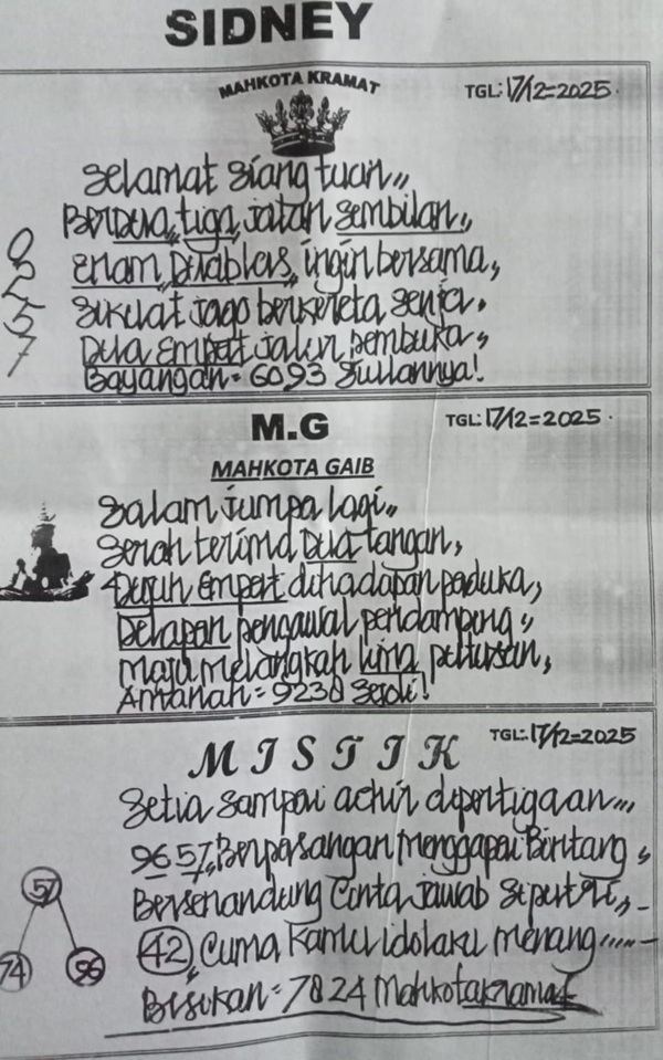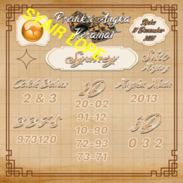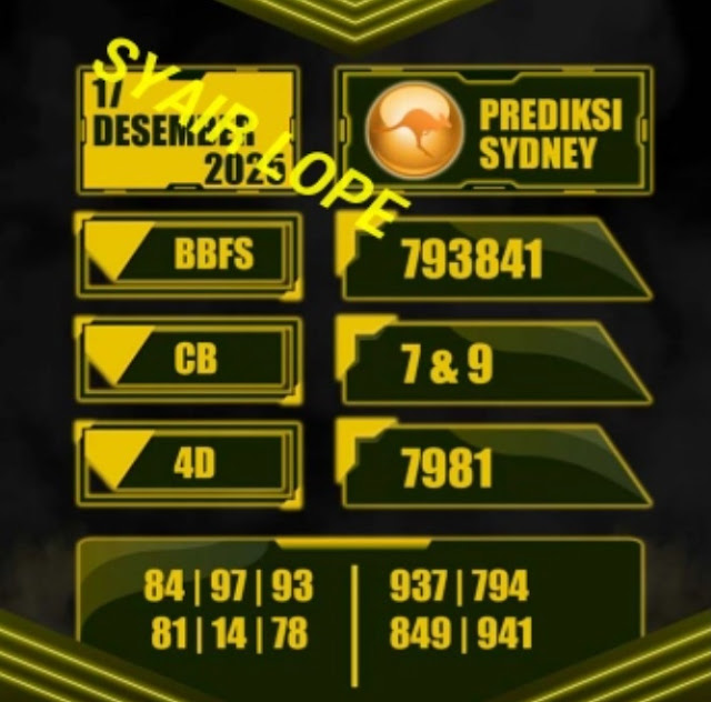 SYAIR PREDIKSI KELUARAN SYDNEY, 17-Des-2025