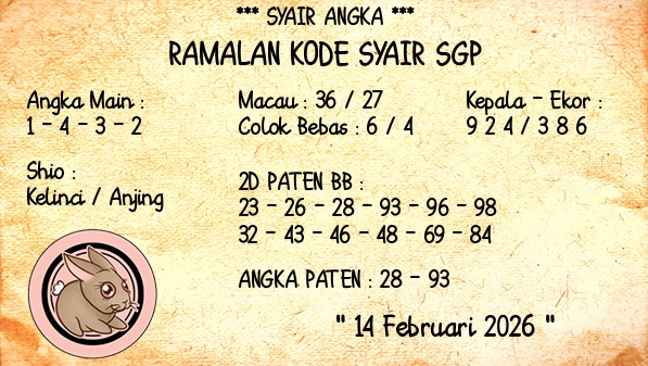 SYAIR PREDIKSI KELUARAN SGP, 14-Feb-2026